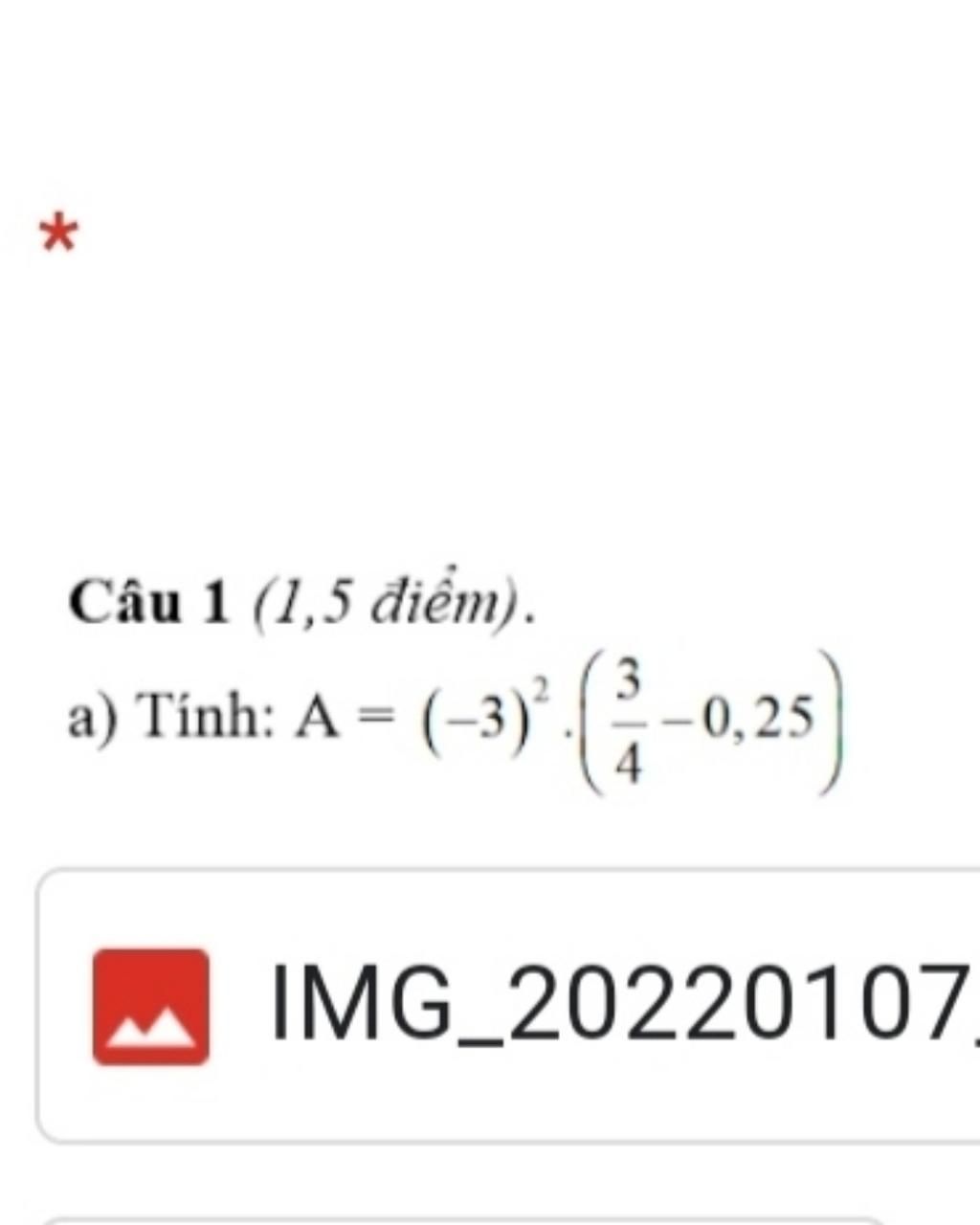 `A = ( -3 )^2 . ( 3/4 - 0,25 )`