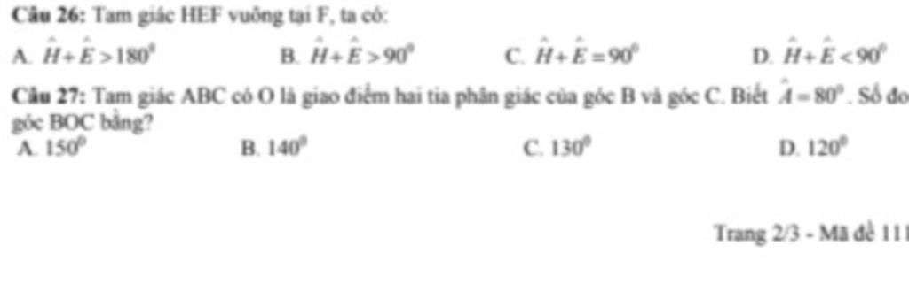 Cầu 26: Tam giác HEF vuông tại F, ta có: