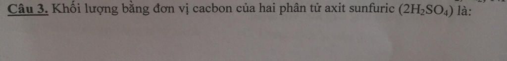Khối lượng bằng đvC của 1 nguyên tử $H_{2}$$SO_{4}$ là: