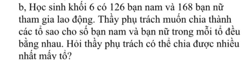 Gọi số tổ có thể chia được nhiều nhất là x ( tổ ; x ∈ N ∗ )