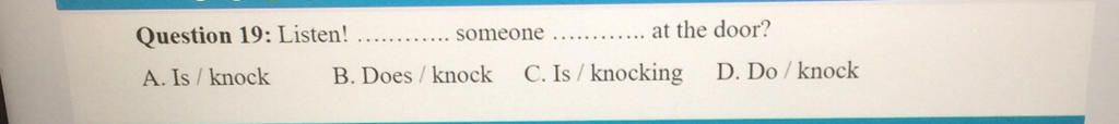 - Chủ ngữ : someone là số ít -> Chọn is là tobe