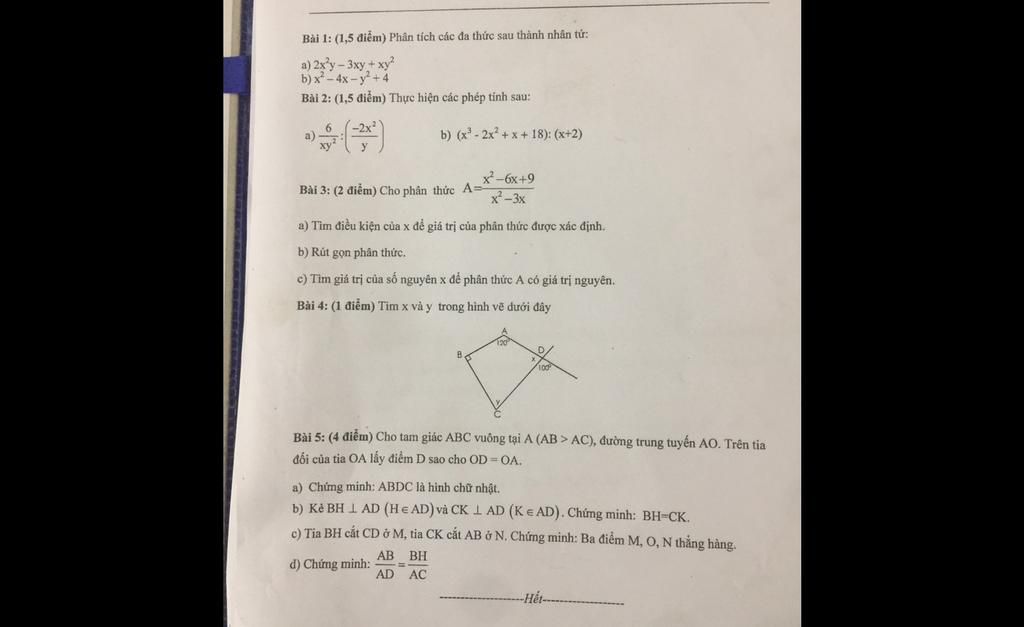 Bài 1: (1,5 điểm) Phân tích các đa thức sau thành nhân tử: