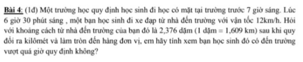 Thời gian từ nhà đến trường là: