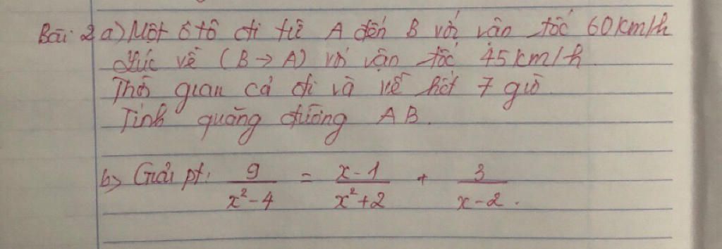 a) Thời gian đi và về lần lượt là $\dfrac{{AB}}{{60}}\left( h \right);\dfrac{{AB}}{{45}}\left( h \right)$