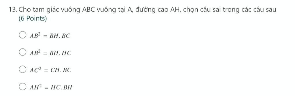 câu B . AB²=BH.HC