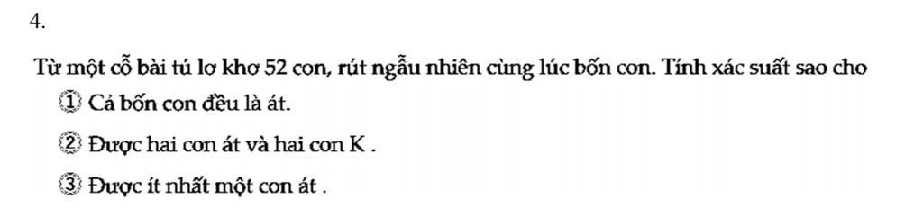 1. Đặt A : « Cả 4 con lấy ra đều là át »