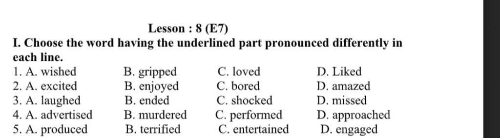 Phát âm là /d/ các từ còn lại phát âm là /t/