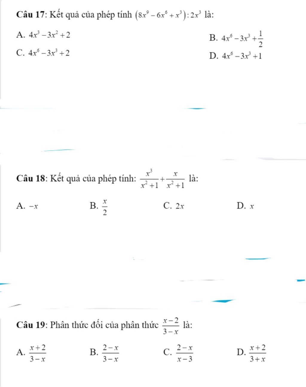 `( 8x^9 - 6x^6 + x^3) : 2x^3`