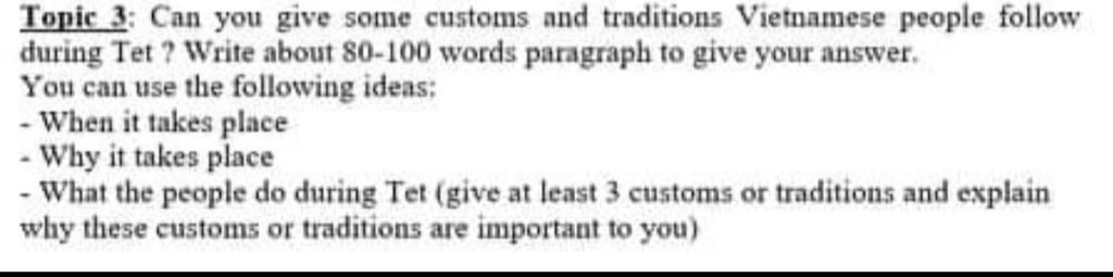 during Tet ? Write about 80-100 words paragraph to give your answer.