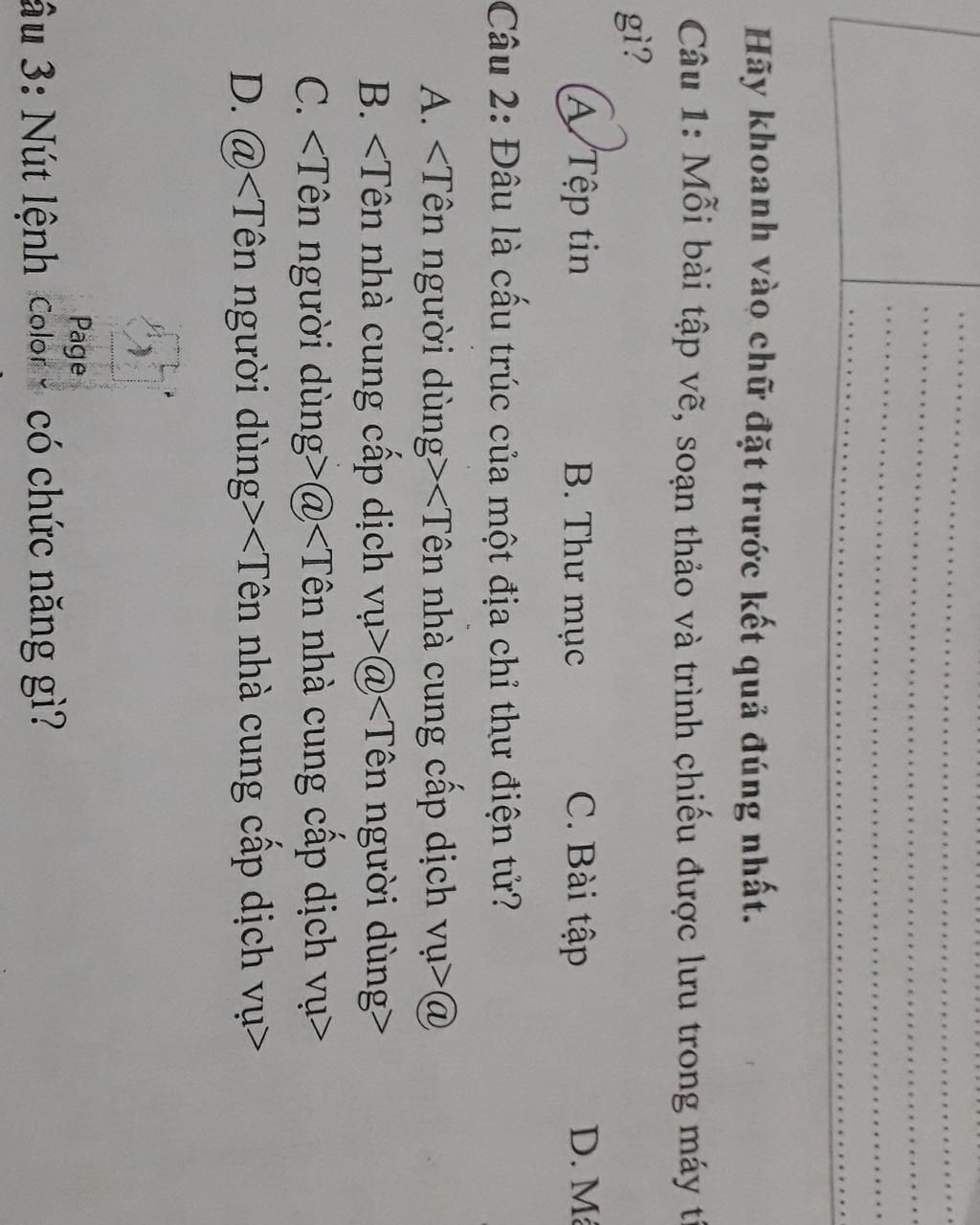 Câu 2: Đầu là cấu trúc của một địa chỉ thư điện tử?