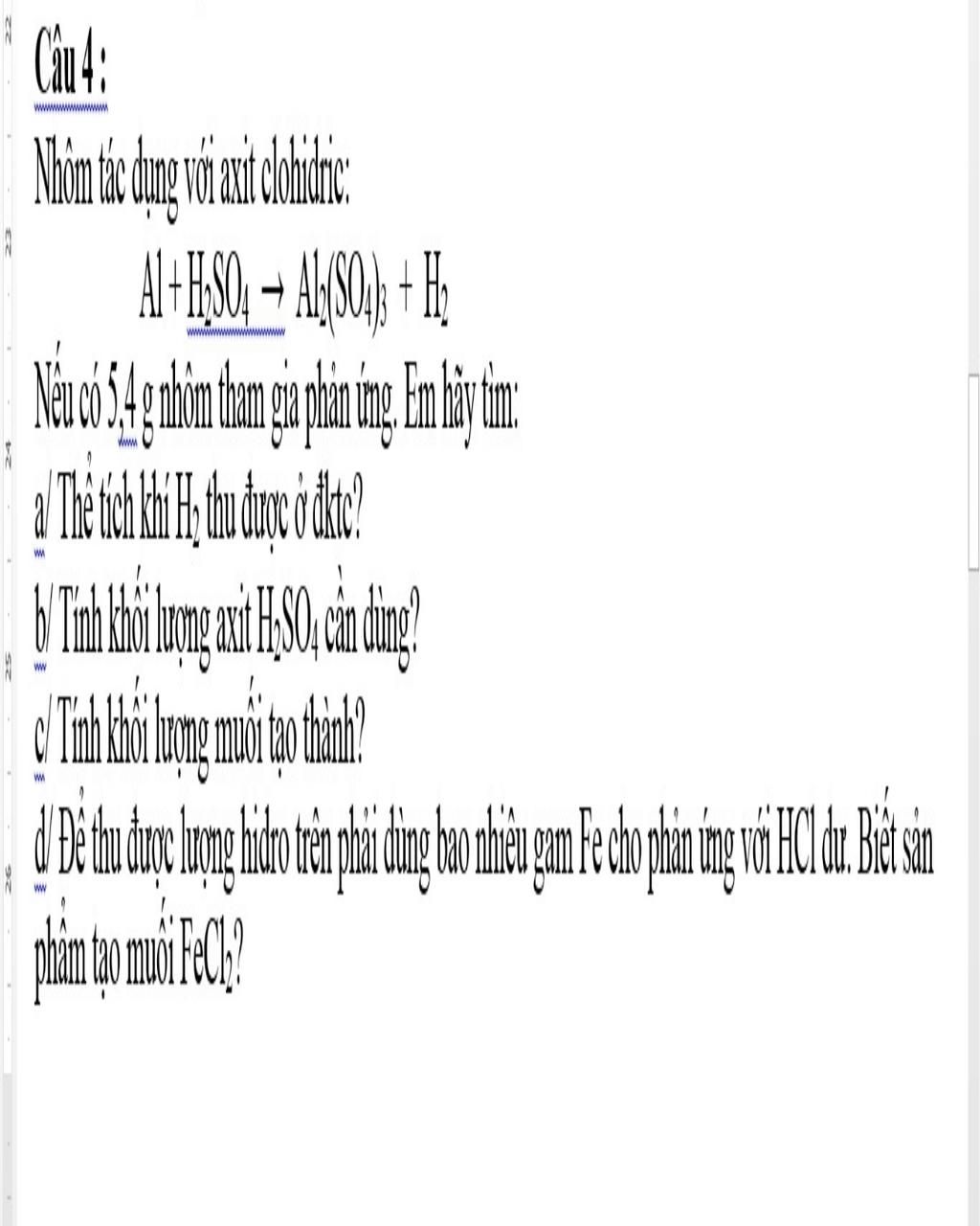Thể tích $H_{2}$ =0,3x22,4=6,72l