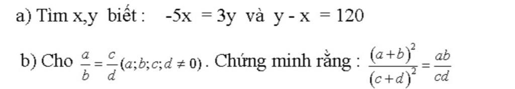 $\text{a, Tìm x, y biết : -5x = 3y và y - x = 120}$