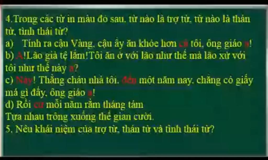 - Tình thái từ là những từ được thêm vào câu để tạo câu nghi vấn, câu cầu khiến, câu cảm thán nhằm biểu thị sắc thái, tình cảm của người nói.