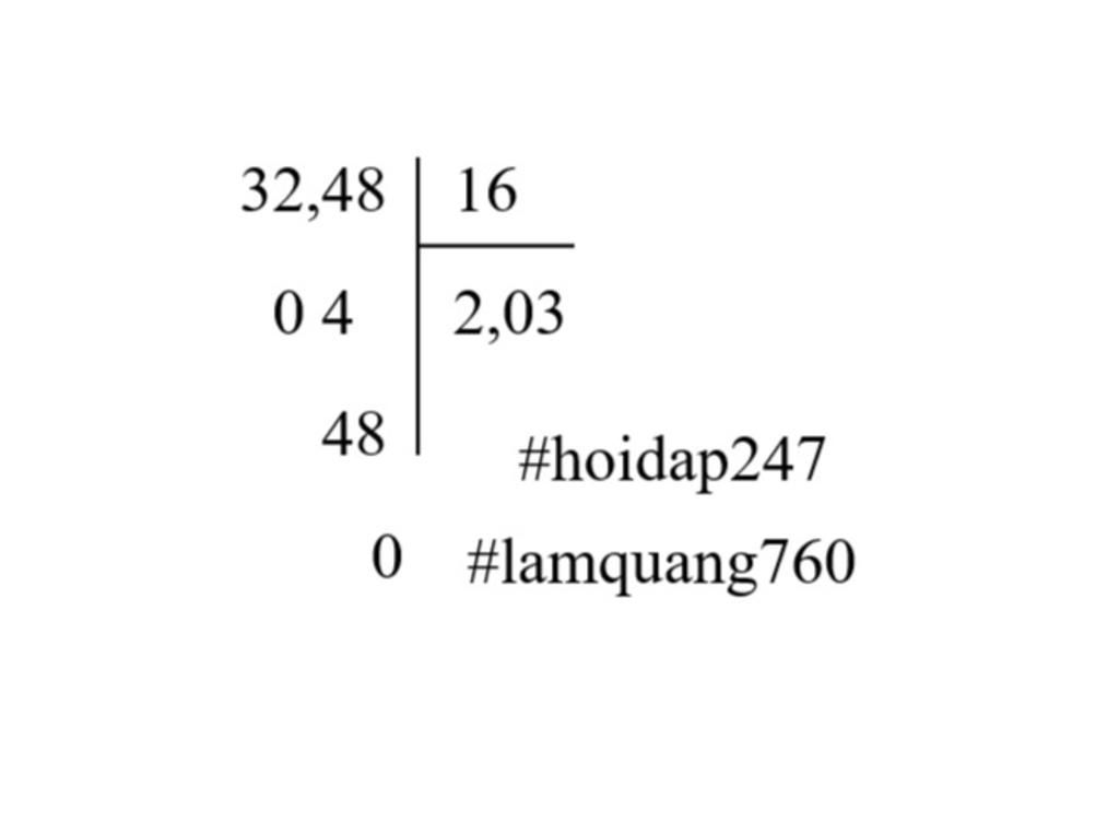 $\text{32,48 : 16 = 2,03}$