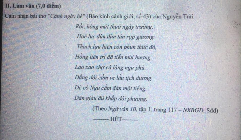 Cảm nhận bài thơ "Cánh ngày hè" (Bảo kính cảnh giới, số 43) của Nguyễn Trãi.