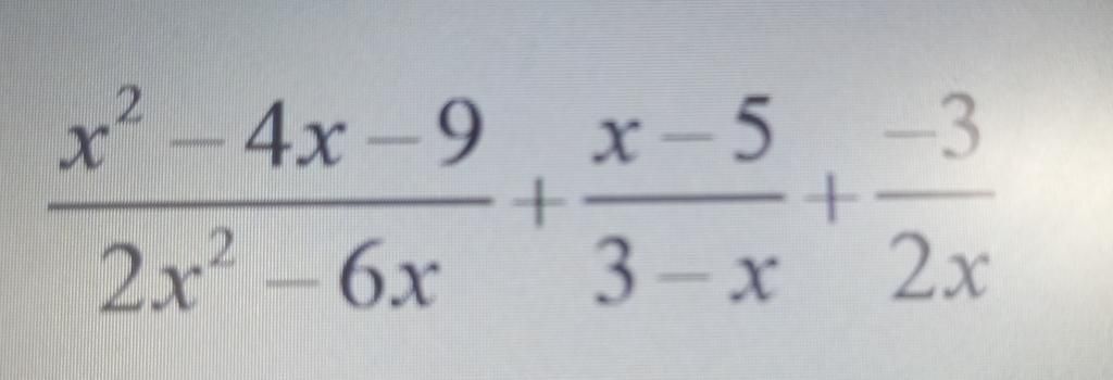 \dfrac{{{x^2} - 4x - 9}}{{2{x^2} - 6x}} + \dfrac{{x - 5}}{{3 - x}} + \dfrac{{ - 3}}{{2x}}\\