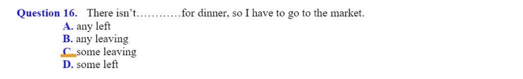 Đáp án: A. any left