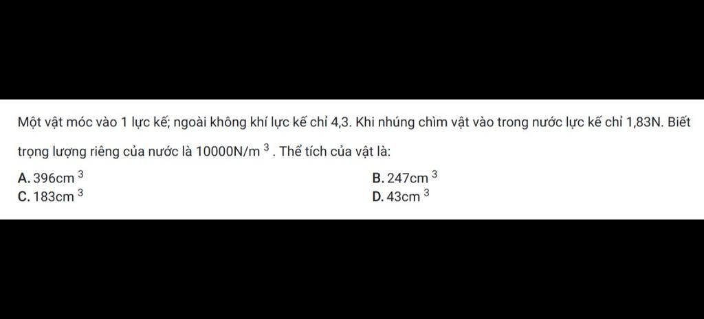 `V=F_A/d=(3,47)/10000=0,000347(m^3)=347(cm^3)`$\\$
