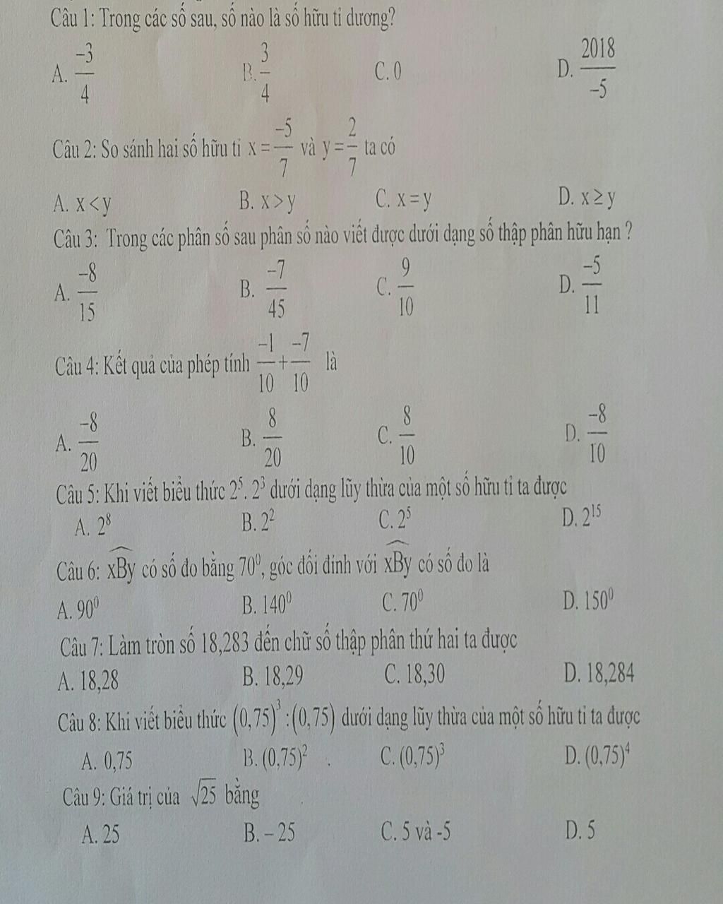 Câu 1: Trong các số sau, số nào là số hữu ti dương?