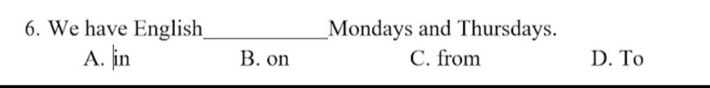 VD: I have English on Wednesday.
