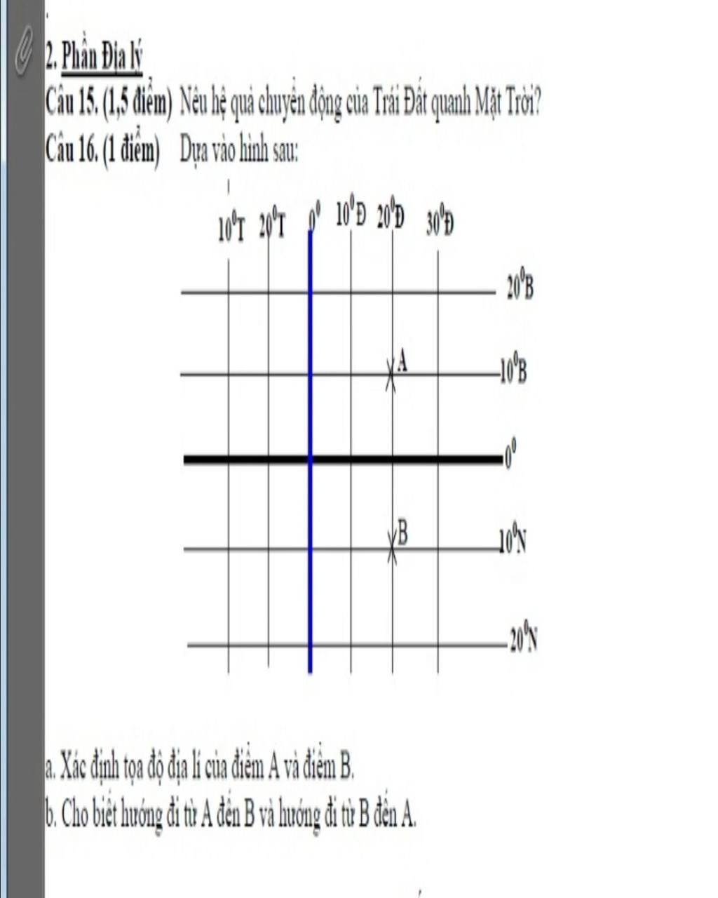 Câu 15 : Trái Đất chuyển động quanh Mặt Trời có 3 hệ quả :