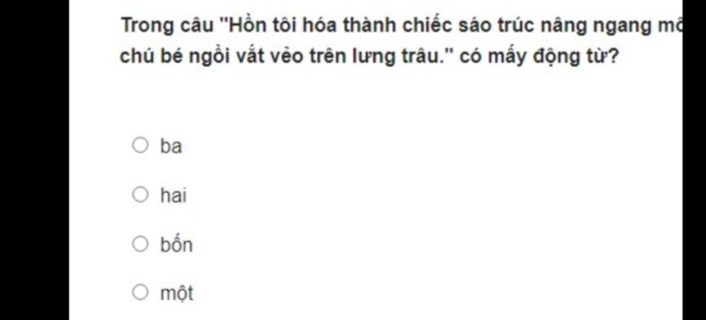 Có 3 động từ, đó là: hóa, nâng, ngồi.