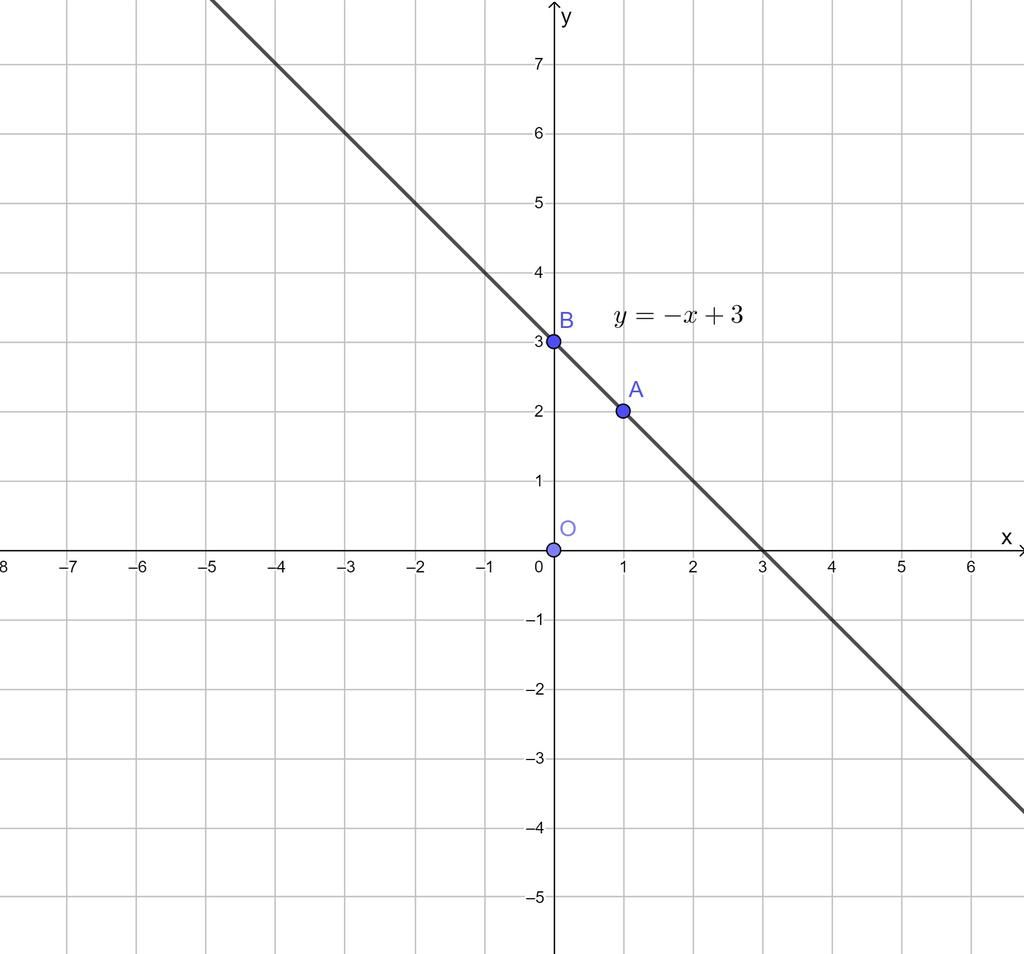 Vẽ đường thẳng đi qua $2$ điểm $A,B$ ta được đồ thì hàm số $y=-x+3.$
