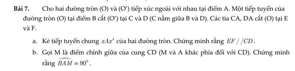 a. Kẻ tiếp tuyến chung xAr' của hai đường tròn. Chứng minh rằng EF//CD.