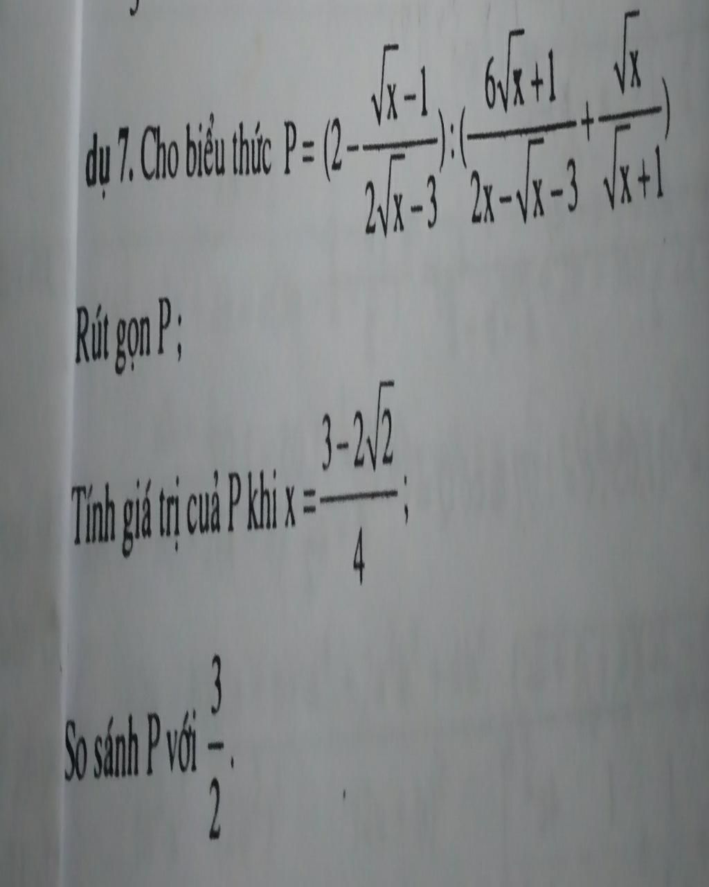 \Leftrightarrow P = \dfrac{{3\sqrt x - 5}}{{2\sqrt x + 1}} = \dfrac{{3.\dfrac{{\sqrt 2 - 1}}{2} - 5}}{{2.\dfrac{{\sqrt 2 - 1}}{2} + 1}}\\