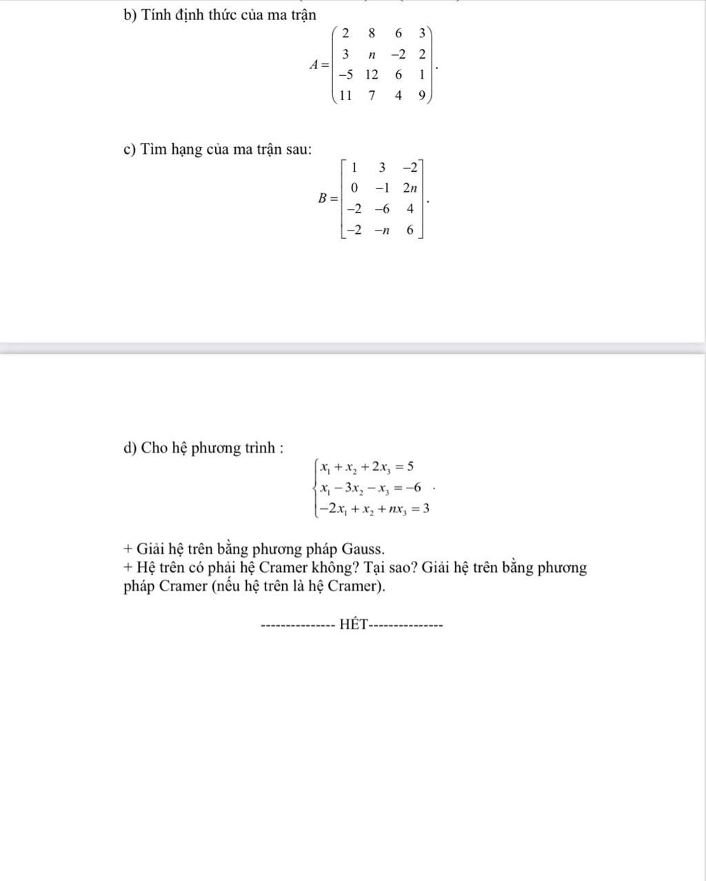 + Hệ trên có phải hệ Cramer không? Tại sao? Giải ...