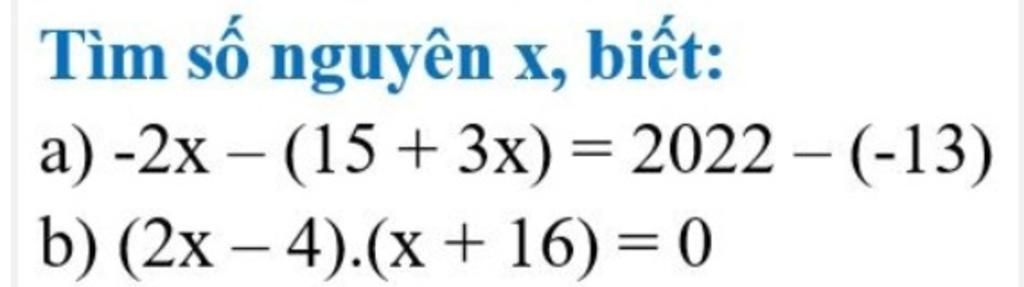 - 2x - \left( {15 + 3x} \right) = 2022 - \left( { - 13} \right)\\