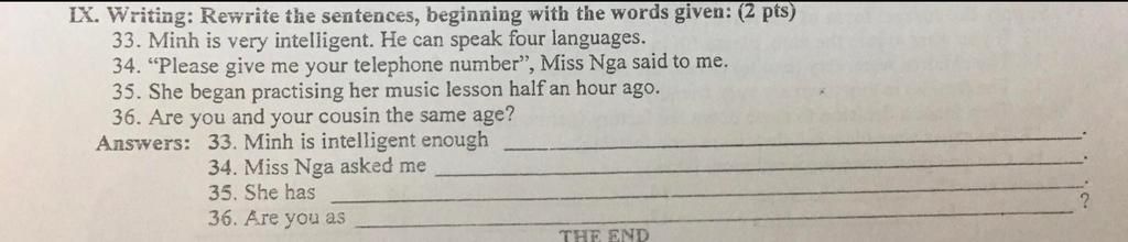 `\rightarrow` Câu mệnh lệnh : S + asked / ordered / ... + O + ( not ) to do sth