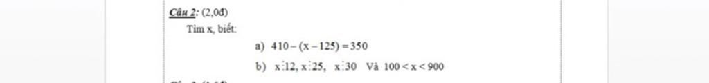 b) `x \vdots 12 ; x \vdots 25 ; x \vdots 30 ( 100 < x < 900 )`