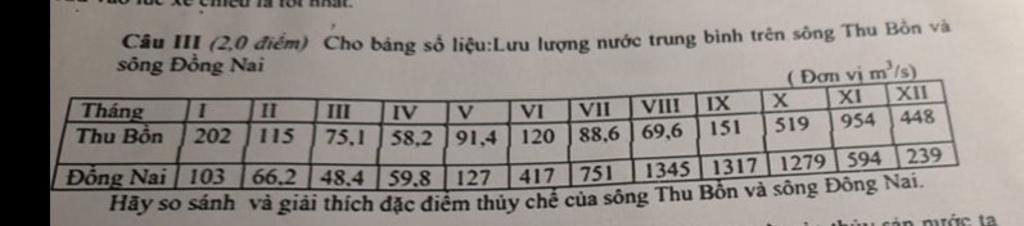 Thủy chế của sông Thu bồn và sông Đồng Nai có sự chênh lệch khá lớn cụ thể như sau: