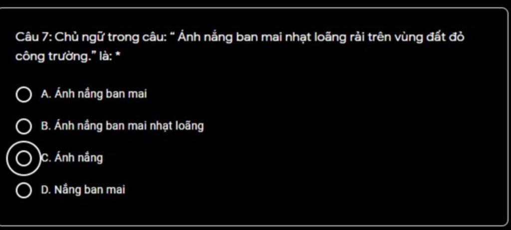 đáp án A ánh nắng ban mai (chỉ ánh nắng buổi sáng sớm )