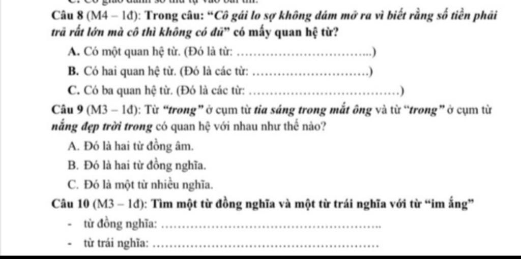 Câu 8. C. Có 3 quan hệ từ ( Đó là các từ: vì, mà, thì.