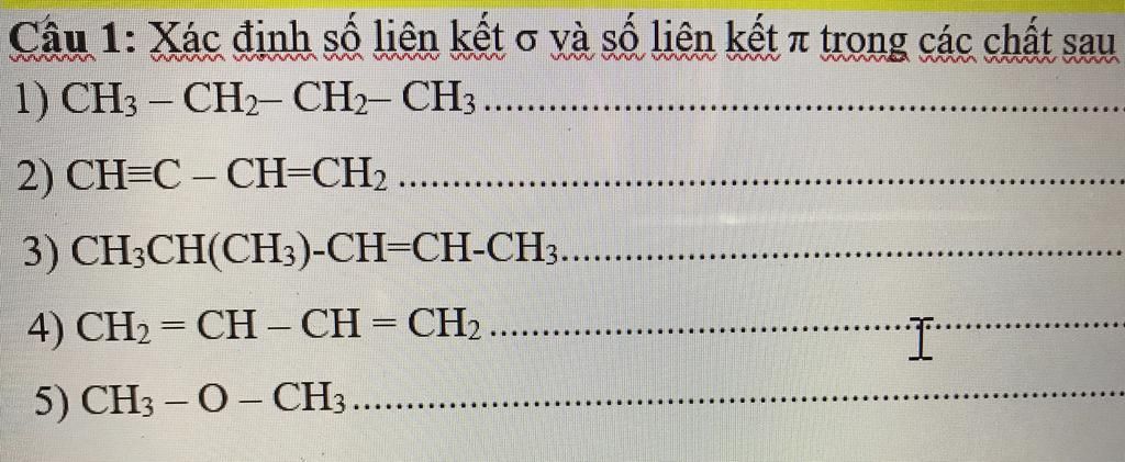 Cầu 1: Xác định số liên kết o và số liên kết n trong các chất sau