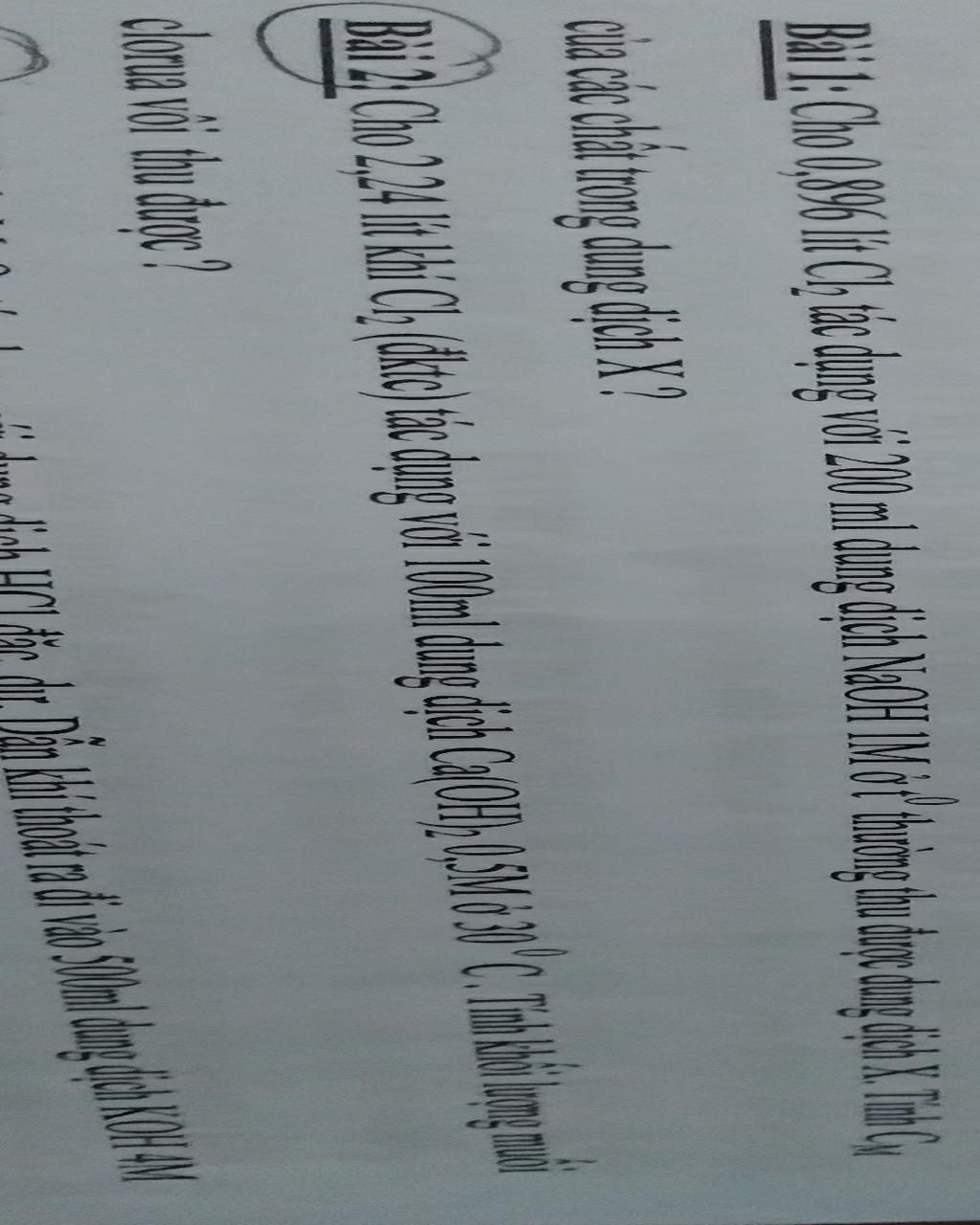 \({n_{C{l_2}}} = \frac{{2,24}}{{22,4}} = 0,1{\text{ mol;}}{{\text{n}}_{Ca{{(OH)}_2}}} = 0,1.0,5 = 0,05{\text{ mol < }}{{\text{n}}_{C{l_2}}}\)