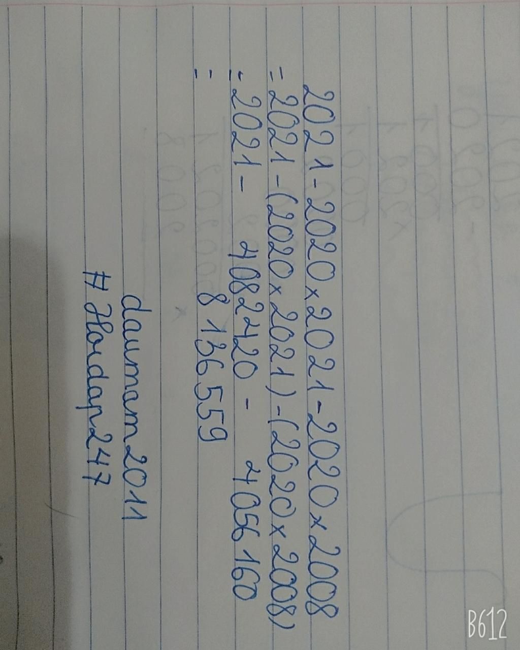2021-2020x2021-2020x2008=2021-4082420-4056160=-4080399-4056169=8136568.