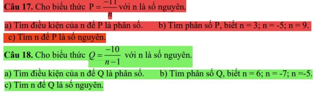 c)Q \in Z \to \dfrac{{10}}{{n - 1}} \in Z\\