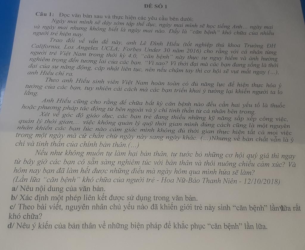 - Một phép liên kết được sử dụng trong văn bản: phép lặp ( "người trẻ", "căn bệnh")