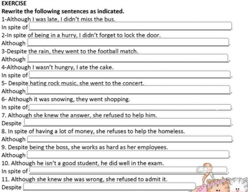 3-Despite the rain, they went to the football match.