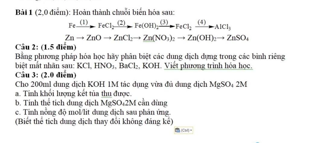 - Mẫu thử không làm quỳ tím đổi màu: $KCl,BaCl_2(1)$