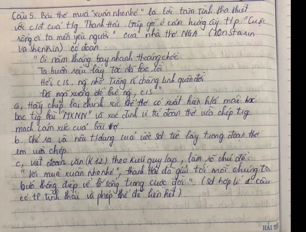 Cau 5. Bài the muà "xuan nhonhc " la loi tam tiah tha thet