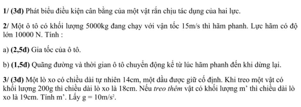 Điều kiện cân bằng: Muốn một vật chịu tác dụng của hai lực ở trạng thái cân bằng thì hai lực đó phải cùng giá, cùng độ lớn và ngược chiều.