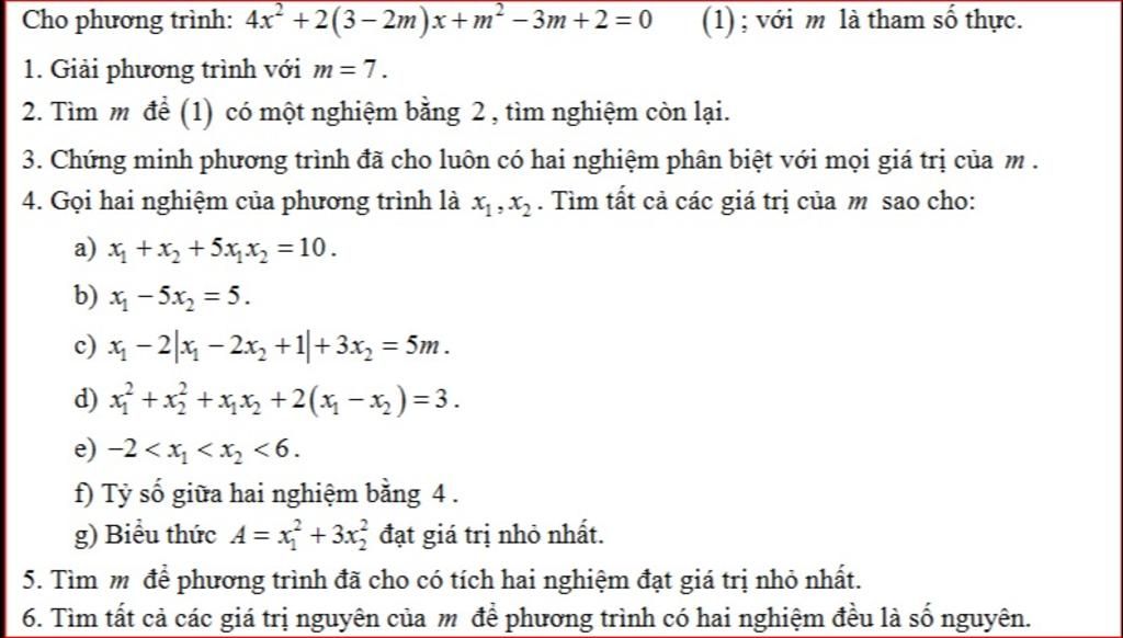 2. Tìm m để (1) có một nghiệm bằng 2, tìm nghiệm còn lại.