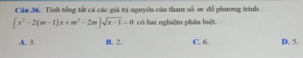 $[x^2-2(m-1)x+m^2-2m] (x-1)=0 (ĐKXĐ x 1)$