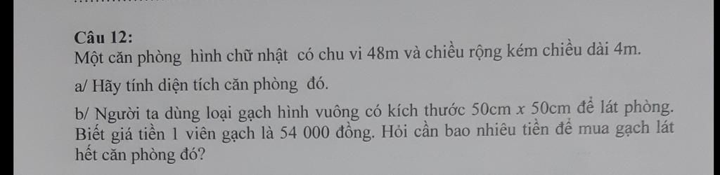 Vậy cần $30 240 000 \text{(đồng)}$ để lát phòng