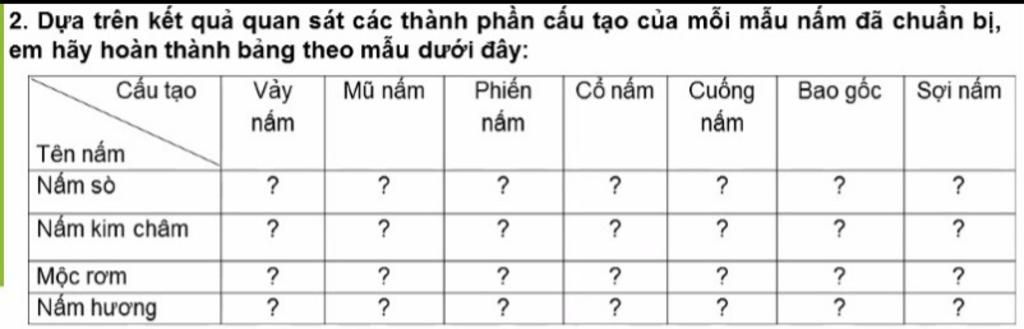 Nấm hương có mũ nấm, phiến nấm, cuống nấm, sợi nấm.