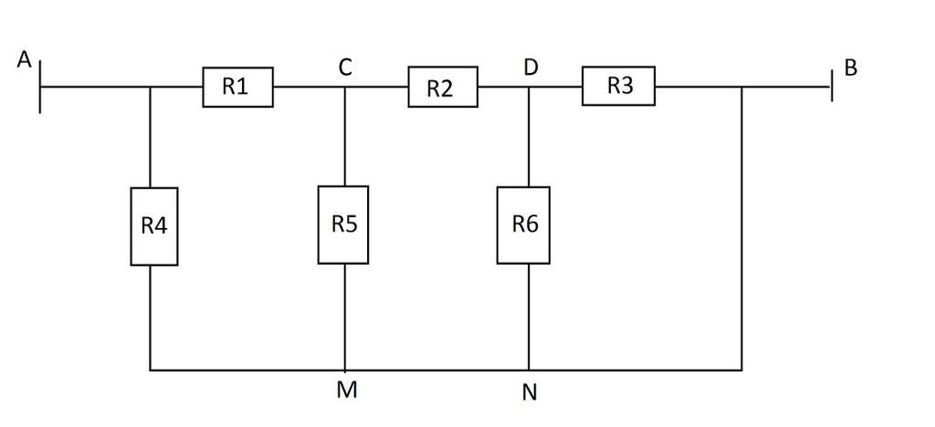 Mạch được cấu tạo: $"$`{[(R_3////R6)\ nt\ R_2]\ ////\ R_5}\ nt\ R_1`$"//R_4$